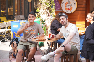 ●與在地友人碰面,逛最熱鬧的地區;吃玉米杯、羊腸烤肉、淡菜鑲飯