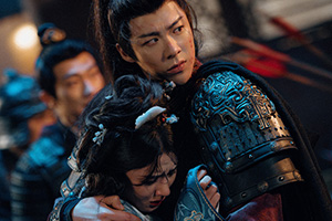 城內的小喬已經下定決心阻止劉琰,她想盡辦法掙脫看守,引火燒了硫磺。城中大亂,魏劭借此攻城。劉琰見大勢已去,急忙出城,離開之前還想擄走小喬,魏劭大軍進城,打出誅滅劉琰小喬的旗號。