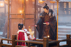 時間來到新年,小喬第一次以女君的身分,和魏劭一起參加祭祀大典,兩人站在高臺上,為魏國百姓祈福。在眾百姓的簇擁下,魏劭和小喬迎接著鮮花瓜果,與小喬當初入城形成了鮮明對比,如今不止是魏劭,連全城百姓都對小喬愛戴有加。魏劭高興地帶著小喬上高臺賞景,甚至擔心小喬累到,背著她一階一階向上走。