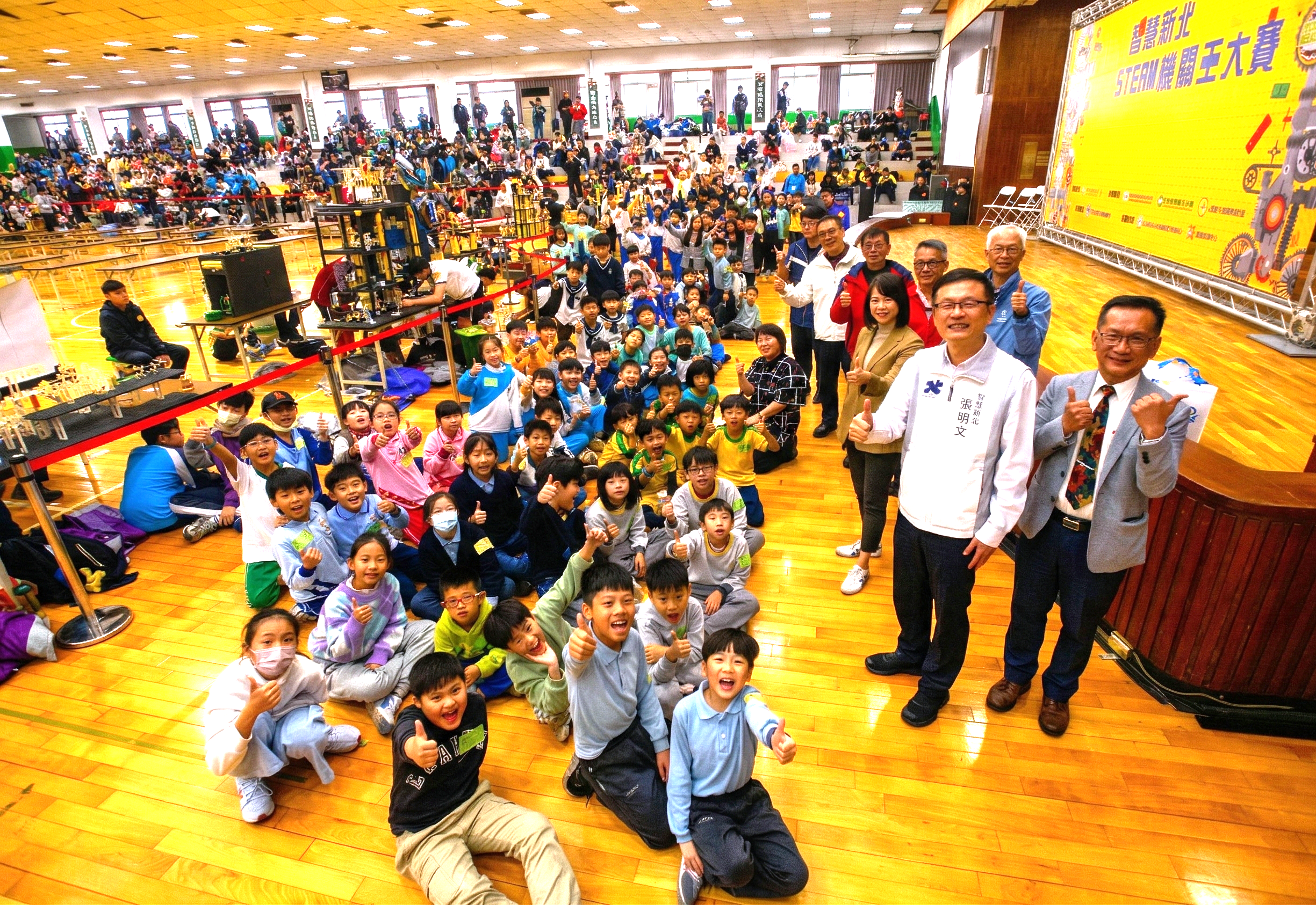 ▲2026「智慧新北STEAM機關王大賽」昨(8)日在永和國中盛大登場【新北市訊】把教科書裡的力學、槓桿、齒輪與程式控制,學以致用搬上賽場!2026「智慧新北STEAM機關王大賽」昨(8)日在永和國中盛大登場。今年吸引超過100組隊伍、350多名學生同場競技,在限時挑戰中完成自動化機關與機器人任務,現場腦力全開、合作解題,展現新北學子的跨域實作力與團隊協作素養。